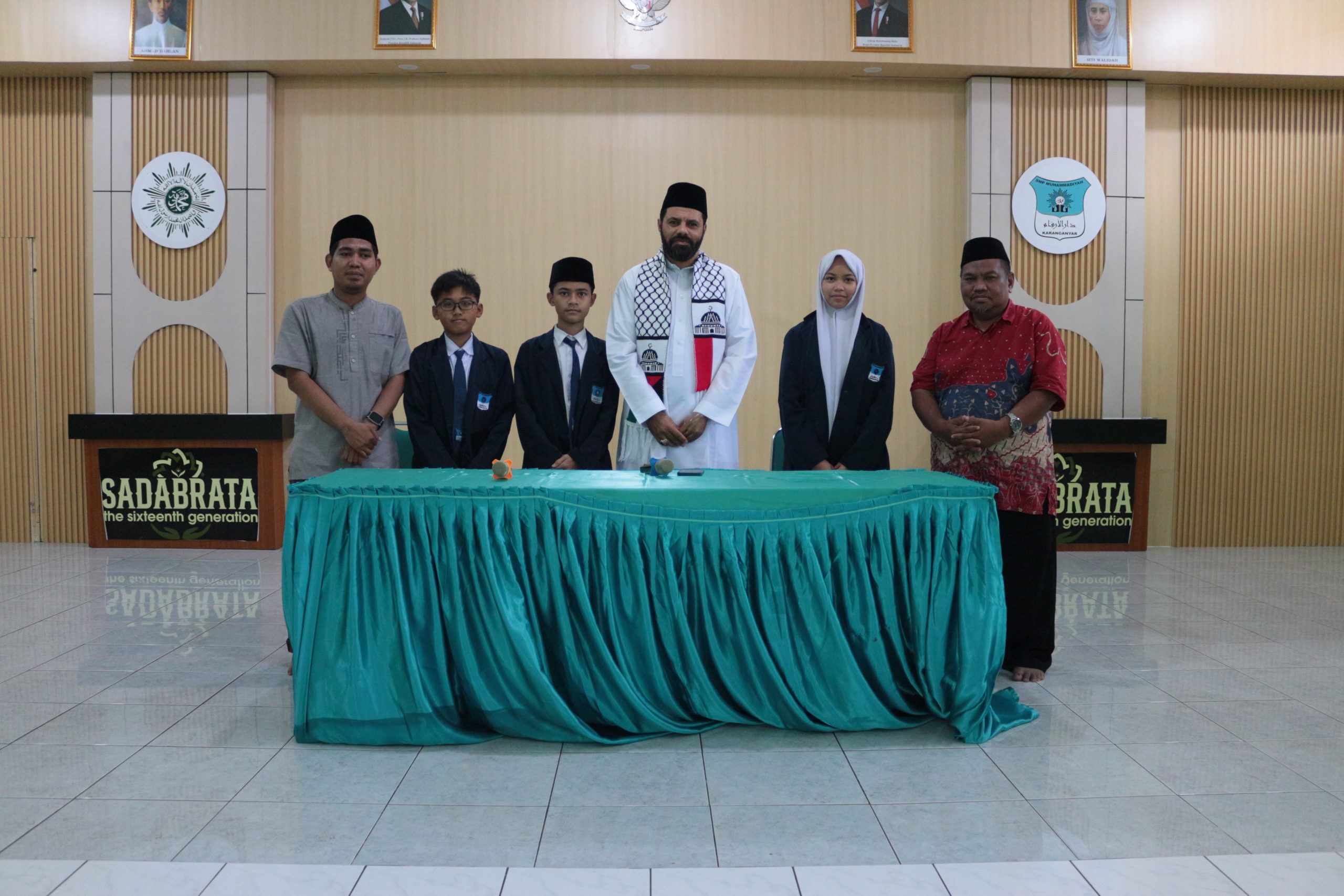 Karanganyar (3/3) – Syekh Palestina hadir di SMP Muhammadiyah Darul Arqom Karanganyar sebagai salah satu agenda Safari Dakwah di Bulan Ramadan. Di kesempatan kali ini yang hadir adalah Syekh Hasan Abd Elqader Mohammed Abu Toha. Beliau tiba di SMP Muhammadiyah Darul Arqom sekitar jam 11 siang. Sekitar enam puluh menit beliau memberikan motivasi kepada para siswa SMP Muhammadiyah Darul Arqom tentang pentingnya menuntut ilmu.