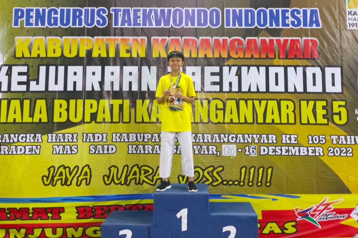 Kabar gembira tersebut dibawa oleh siswa bernama Aurel Kenzie Putra Sakti dari kelas 8A yang berhasil memperoleh juara 1. Kenzie memperoleh medali emas bersama 18 peserta yang lain. Total ada 19 peserta yang berhasil memperoleh medali emas dari berbagai kategori. Kejuaraan Taekwondo Bupati Cup diselenggarakan di GOR Raden Mas Said pada Kamis 15 Desember hingga Jumat 16 Desember. Kegiatan ini dilaksanakan dalam rangka HUT Kabupaten Karanganyar yang ke 105. Di kejuaraan ini Kenzie bersaing dengan lebih dari 600 atlet dari Kabupaten Karanganyar. 600 atlet tersebut terbagi atas dua kategori yaitu kategori Kyorugi dan Poomsae. Prestasi yang didapatkan Kenzie tentu sangat luar biasa. Setelah mengikuti Penilaian Akhir Semester Kenzie mengaku langsung mempersiapkan diri mengikuti kejuaraan ini. Porsi latihan juga ditambah secara berkala agar semakin siap dan percaya diri.